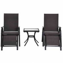 ¿Quieres sentarte cómodamente en el jardín mientras disfrutas de tu tiempo libre? Con este conjunto de 5 piezas de Outsunny puedes relajarte al aire libre durante horas. Estructura de metal recubierto en polvo y tejido de textilene transpirable muy resistente y cómodo. El respaldo es ajustable cuenta con 5 posiciones distintas para adaptarse mejor a tus necesidades. El tablero de la mesa es de vidrio templado elegante y funcional. Simplemente siéntate pon los pies en el alto y relajate.