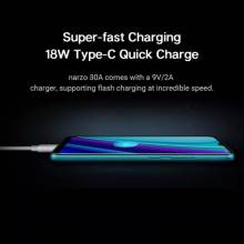 Narzo 30A viene con un cargador de 9V/2A, compatible con carga flash a una velocidad increíble.