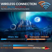 - Con Bluetooth 5.0, la conectividad inalámbrica entre el dispositivo de TV y otros dispositivos se ha mejorado significativamente. Además, el dispositivo de TV inteligente Transpeed también tiene capacidad Dual, lo que significa que puede conectarse a dos redes Wi-Fi diferentes al mismo tiempo, lo que garantiza una conexión a Internet estable y rápida.